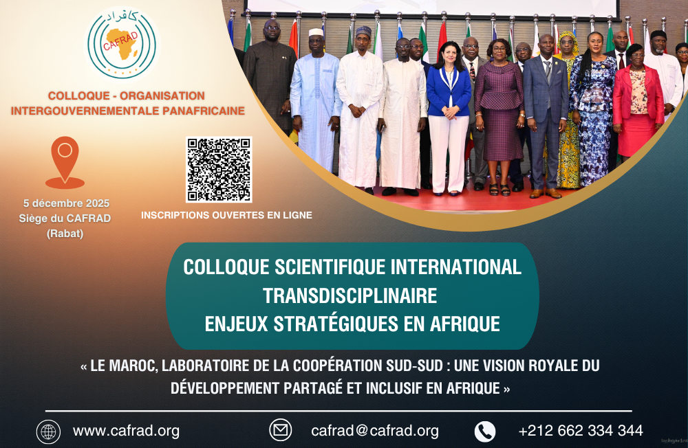 Le Centre Africain de Formation et de Recherche Administratives pour le Développement (CAFRAD) organise un colloque international majeur intitulé « Le Maroc, Laboratoire de la coopération Sud-Sud : une Vision Royale du développement partagé et inclusif en Afrique ». L’événement aura lieu à l’occasion du cinquantième anniversaire de la Marche Verte, une date hautement symbolique qui coïncide cette année avec un tournant historique pour le Royaume du Maroc.